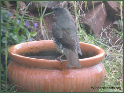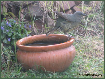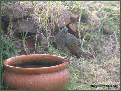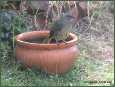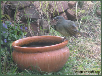 Satin bowerbirds usually live in cool rainforests, migrating to our parts of the world only in winter and early spring. A lady bowerbird has been frequenting the lilypot this winter and the camera was at hand to capture some shots of this beautiful bird. Have a sneak peak below: